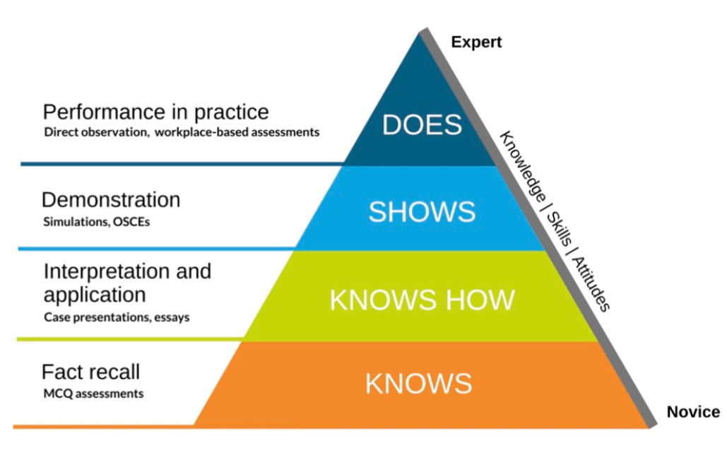 To explain why IELSGC is different, we can look at Miller’s Pyramid of Assessment. While traditional exams test if a student “Knows” (knowledge) or “Knows How” (competence), IELSGC, as a vocational standard, tests if they can “Show How” and ultimately “Do” (performance).